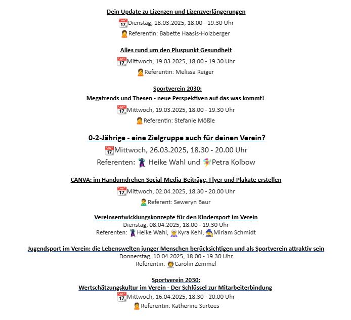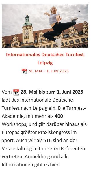 jetzt ist der perfekte Zeitpunkt, um frische Impulse zu setzen und deine Vereinsarbeit weiterzuentwickeln. Mit dem Austauschformat TREFFPUNKT STB Online möchten wir dir wertvolles Wissen vermitteln, damit du deine Ziele erreichst und die Zusammenarbeit in unseren Vereinen förderst. Wir freuen uns auf einen spannenden Austausch, nützliche Tipps und kreative Beiträge, die uns alle voranbringen!.